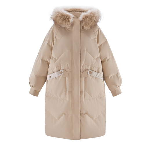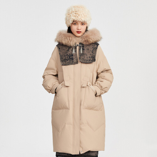 配有可拆卸披肩,还融入敦煌图案,设计不落俗套,穿出时尚感。蓬松大毛领,时尚不老气,温暖护颈。挑选优质羽绒,可以留住温度。
