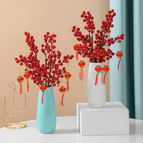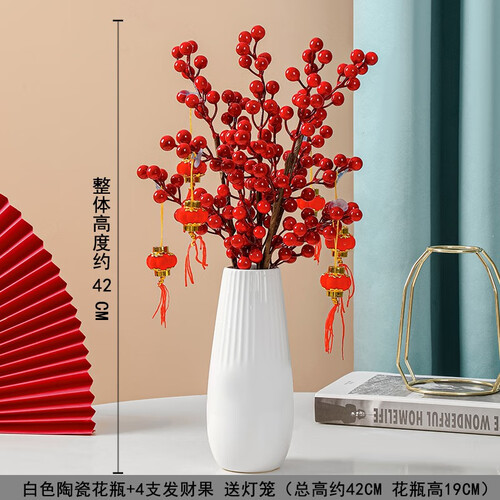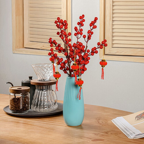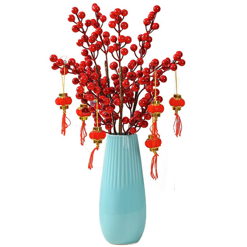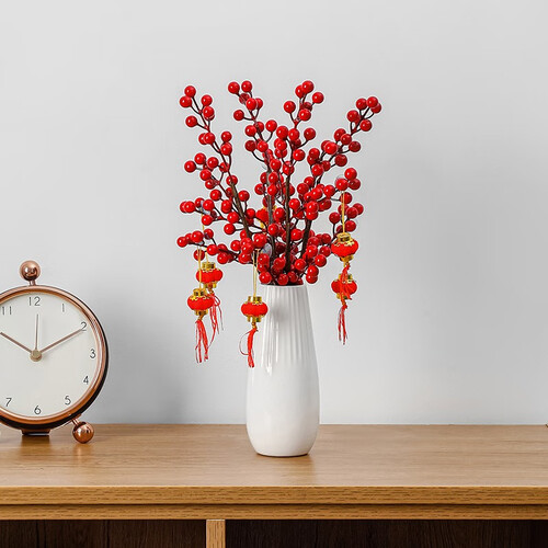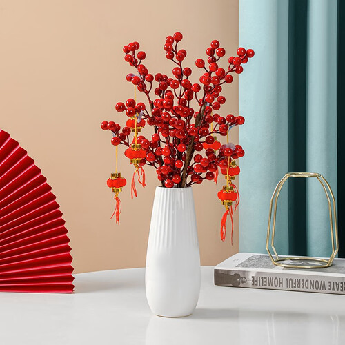 配置手工制作的仿真红果,无需打理,拯救你不会种花的烦恼,火红颜色能为家居增添色彩,是省时又省力的家居花艺。