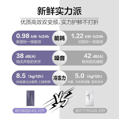 选用高品质变频电机和变频压缩机,节能环保,带来每天不到一度电的使用体验。拥有738mm纤巧身材,摆放无需束手束脚。
