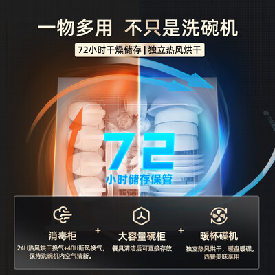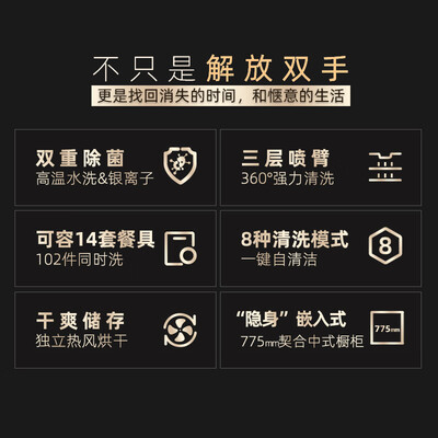 嵌入式的机身,不占多余厨房空间,做饭更宽敞。大容量双层碗架设计,一次能放下更多餐具,节能省水更省心。