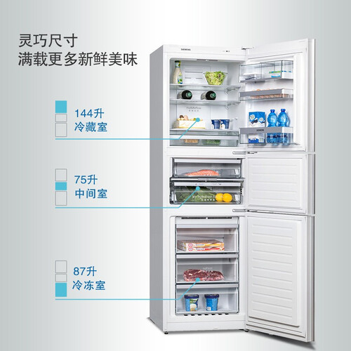 拥有306L使用容量,空间更大,满足一家人不同的食材储存。采用锁水保鲜的设计,适合储存蔬菜,保持蔬菜的新鲜。