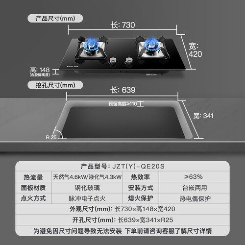 采用酷炫防滑方锅架,增添时尚韵味的同时,放置更加稳当,避免出现滑落的情况。加上可拆卸炉头,清洁更加方便。
