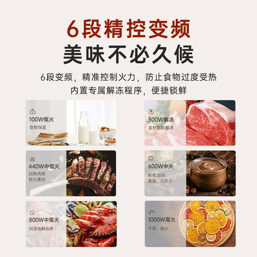 升级双孔直喷蒸汽,带来双倍美味,可以紧紧锁住食材的鲜嫩与营养。6段变频火力,可以按需选择,美味不久等。