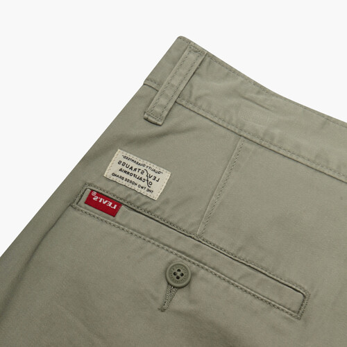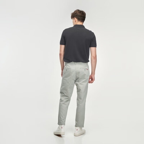 休闲裤版型修身,两侧斜插口袋,一粒扣的后口袋饰以经典红旗标,经典又时尚。棉和弹性纤维混纺面料,金属拉链门襟,彰显品质。