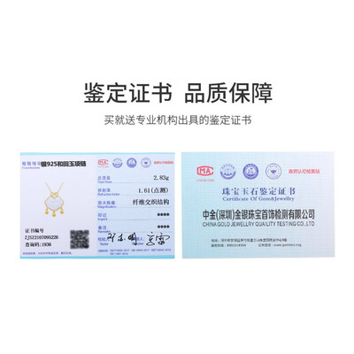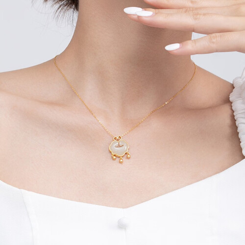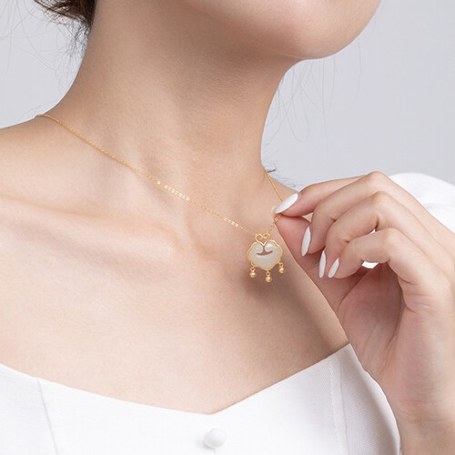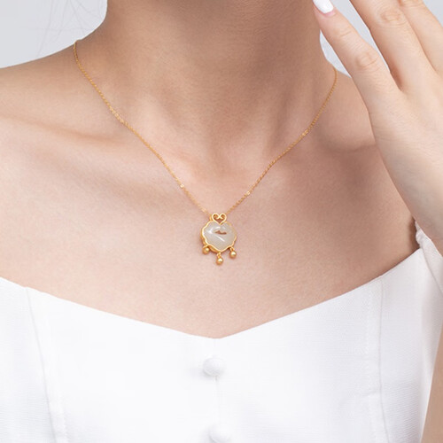 选用不同材质搭配,打破造型单一性,凸显创新设计。吊坠含有和田玉材质,亲肤性能较佳,给予细腻触感。