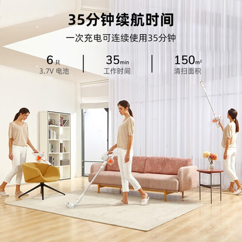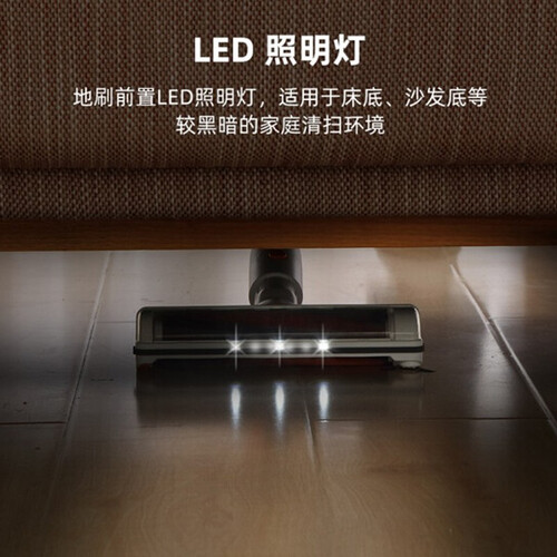 前置LED探照灯,暗处清洁也不怕,可照亮清扫路径,方便清洁。2.5小时即可充满电,续航时间长达35分钟,无惧大户型。