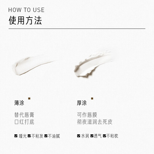 添加乙酰玻尿酸,深度滋润养肤,淡化唇部细纹。富含维生素B5和角鲨烷成分,水润丰盈淡化唇色,细腻有光泽。