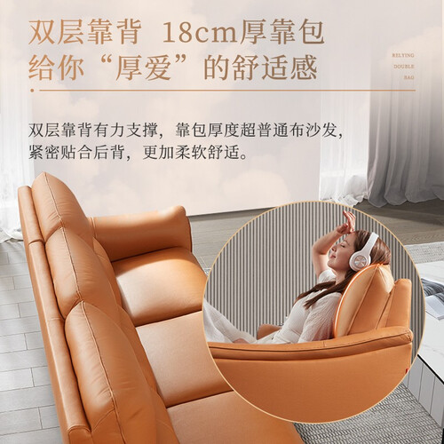 新型科技面料皮的细腻柔滑,布的温顺透气,四季适宜不闷不冰,耐脏易打理,双层靠背有力支撑,紧密贴合后背,更加柔软舒适。