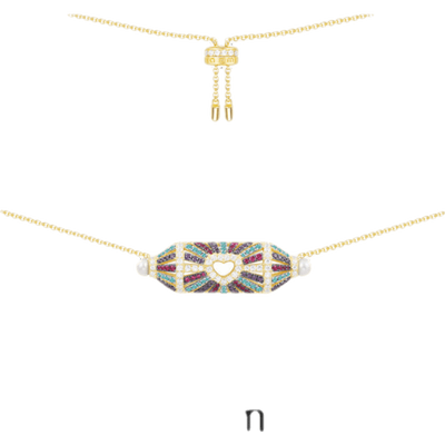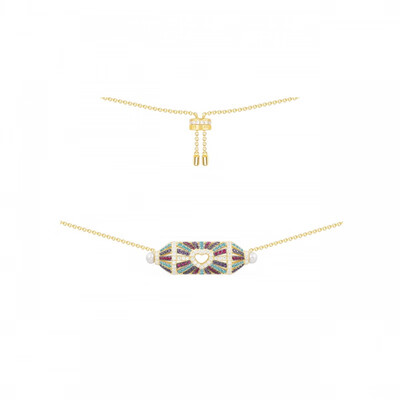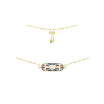 经典的滑扣设计,可随意调节长短,舒适美观。精美的万花筒设计,彰显一抹时尚感。吊坠两边镶嵌珍珠,添加优雅气息。