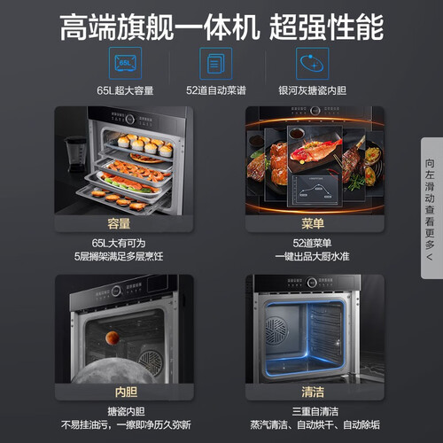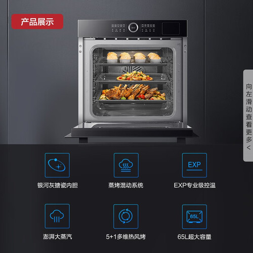 智能按压旋钮,能轻松掌握蒸烤温度,让口感更出色;更有65L大容量,整只火鸡、整条鱼都能轻松容纳,朋友聚会也省心。