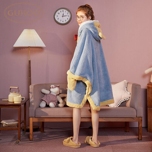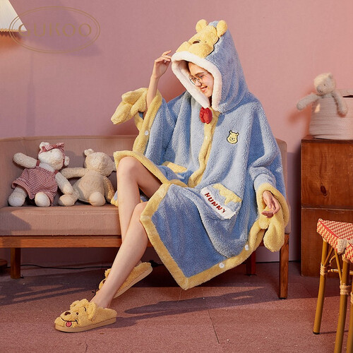 这款睡衣采用了珊瑚绒的材质打造而成,加上衣身的波点印花,绒毛耐看有质感。连帽的卡通形象,更可爱有魅力。