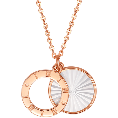 双环的外形环环相扣,寓意爱人难以分离。罗马数字的雕刻更有复古气息,时尚且具有内涵。白贝母的镶嵌与数字呼应,利落简洁。