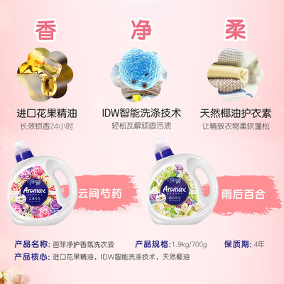 云间芍药和雨后百合两种搭配,随心而选,沉浸于不同芬芳中。天然椰油,温和柔顺衣服丝丝纤维,洗后保持衣服弹力和柔顺感。