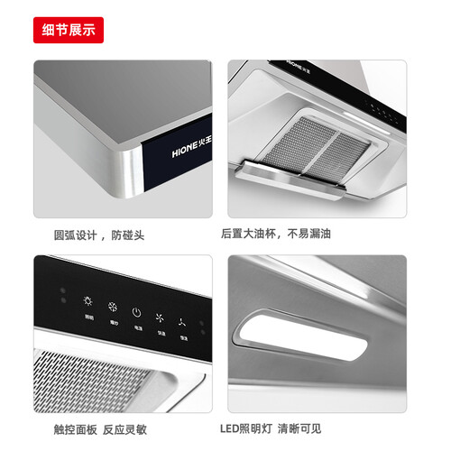 红外线挥手感应开关设计,挥手开启劲吸状态,告别双手油腻感。风轮和蜗壳抗油涂层,表面光滑不易沾油污,清洁更轻松。