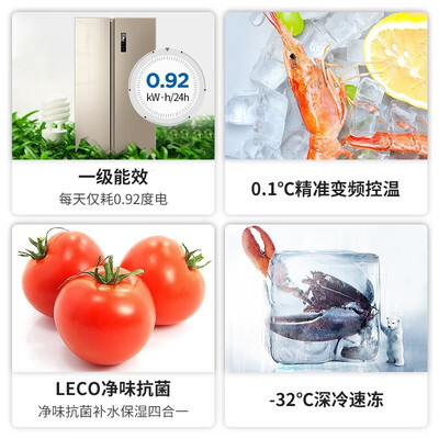搭载创新式双变频技术,可自动识别储物情况,精控箱内湿度水平,更好保鲜。搭载风冷系统,可实现无霜效果,长久保持洁净。