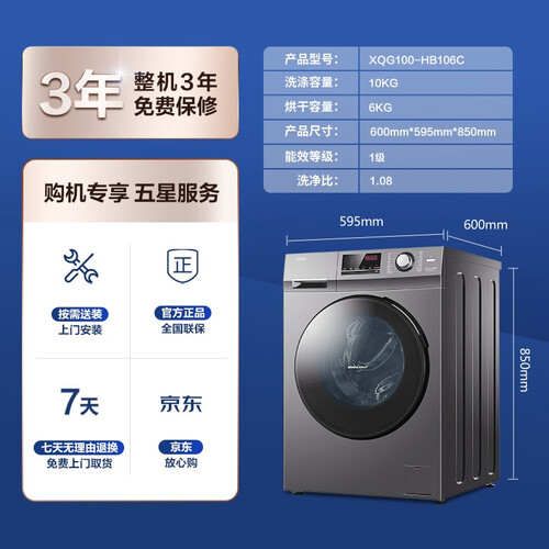 30℃香薰,洗完衣服自带清香,让您拥有美好心情;智能蒸汽烘,保持衣服蓬松感,让您每次穿衣都能拥有柔软触感。
