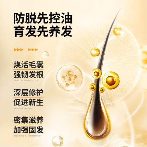 含有生姜提取物、何首乌等成分,具有防脱育发、控油去屑作用,有助改善发质;使用8周,发丝就肉眼可见的强润、乌黑亮泽。