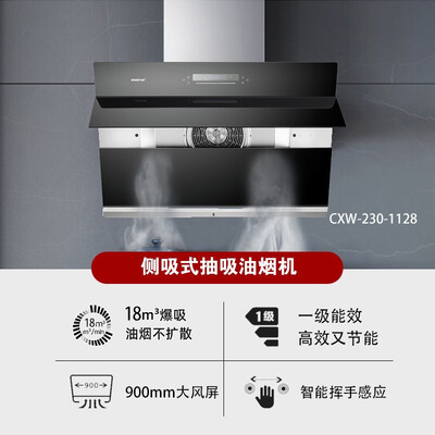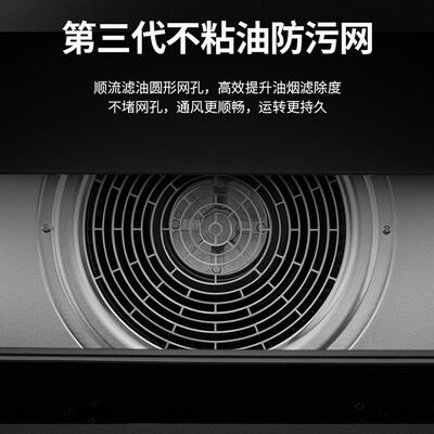 360pa自动巡航增压,吸力可达16m³/min,无视排烟高峰期。900mm超大导烟板,自动开合,有效疏导油烟。
