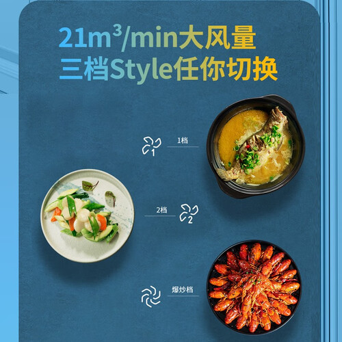 顶侧双吸设计,能够将油烟分层锁定,防止油烟扩散逃逸,让油烟无处可逃。搭配21m³/min的澎湃吸力,还你一个清新厨房。