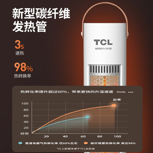 碳纤维制热管,升温速度快,开机3秒即可感受到阵阵暖意。电热转换率高达98%,低碳节能,绿色环保。