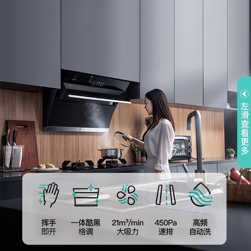 具有四挡可调风量,可按需调节,解决多种吸油烟的需求。搭配高频自动洗功能,无需亲自动手清洁,解放你的双手。