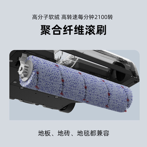 内置45000转/分钟高速自适应变频电机,强劲吸力轻松去除污渍。加之可拆卸复合滚刷,兼容各种地形。
