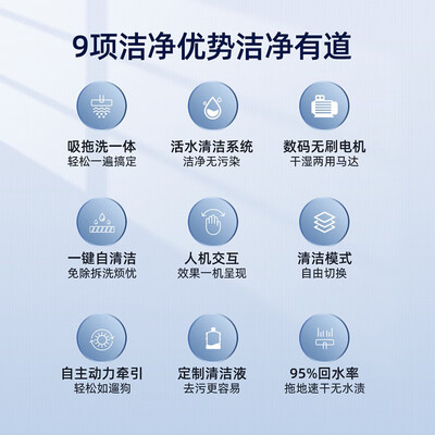 一键自清洁,不需要动手拆卸,操作简单便捷,自动清洗干净不脏手。活水清洁系统,清污分流,地面擦拭一次就干净。