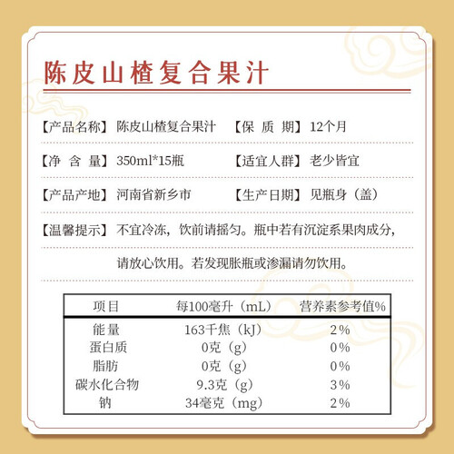 精选优质陈皮和山楂,口感酸酸甜甜,使口腔更清新。采用科学配比,营养更均衡,正餐饮用营养又美味。