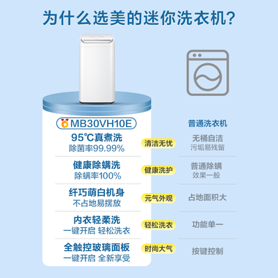 搭载95℃真煮洗,持续高温煮洗,深层除菌99.99%,守护家人健康。采用LED触屏,灵敏触控,一键即启,洗衣更方便省心。