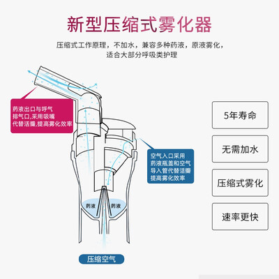 通过欧盟EC认证,采用压缩式原理,原液雾化,颗粒细腻轻薄。五分钟就能完成雾化,缩短时间更省心。
