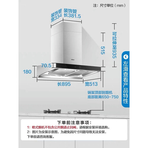双腔双控烟设计,能解决双灶不同净烟需求,令厨房空气保持清新自然。沉吸式造型设计,可近距离接触油烟源,排烟彻底。