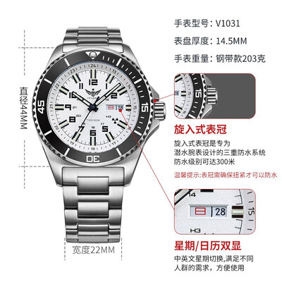 野狼军表钢带手表男士机械表
