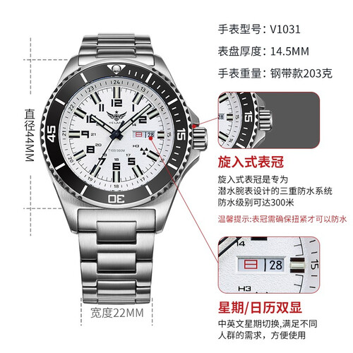 氚气自发光,随时都可了解目前的时间情况。简约黑白配色,彰显出更为前卫大气的视效,更合你的品位。