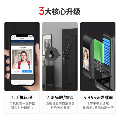 双电池独立供电,门锁和摄像头互不干扰,续航时效长久。三大安全提醒,可轻松应对各种紧急情况,降低安全隐患。