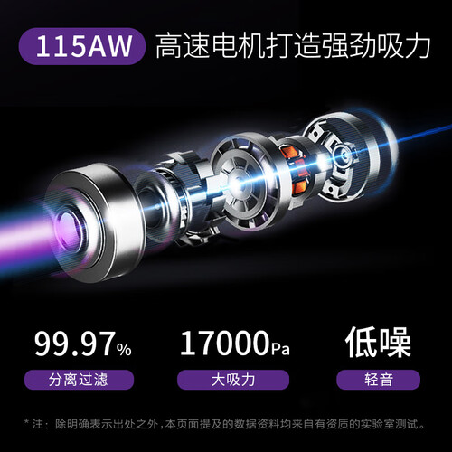 115AW大吸力,可对全屋进行深度清洁,拒绝遗留死角。搭载细密纤维静电滚刷,直径更大,省心清洁吸附灰尘。