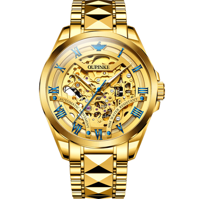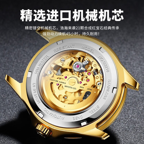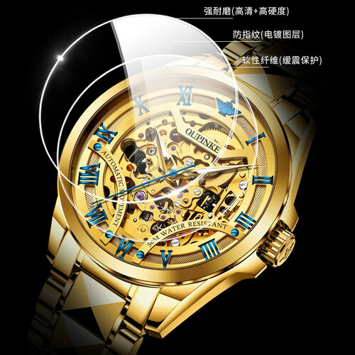 进口精密镂空机械机芯,运转情况清晰直观呈现眼前,满足你的好奇心。21颗合成红宝石传承,平稳运行少误差。