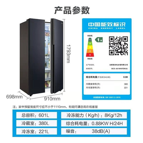 美的 一级能效节能无霜冷藏冰箱