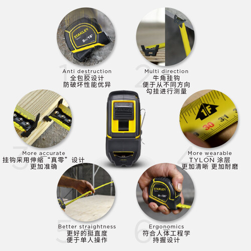 卷尺拥有3米测量长度,轻松满足不同情况下使用需要。配备了牛角挂钩,不论是钩量还是顶量都能确保数据准确。