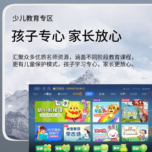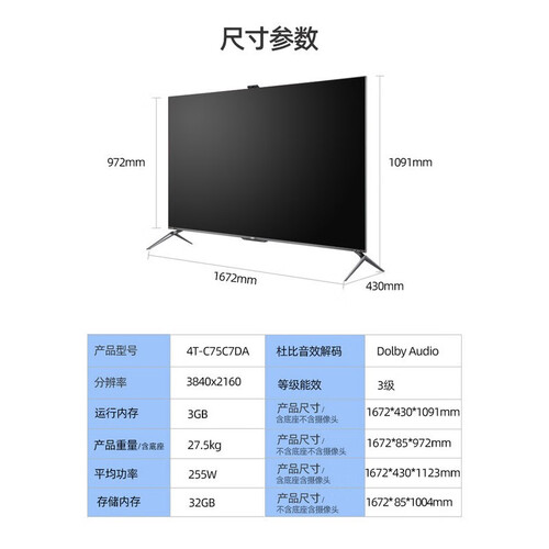 拥有AI画质引擎,可以实时优化画质,为你构造真实细腻的画面。新增加仙女底座,稳定支撑,保护电视不晃动。