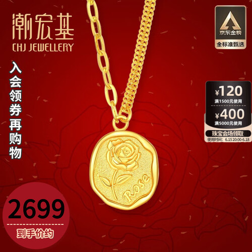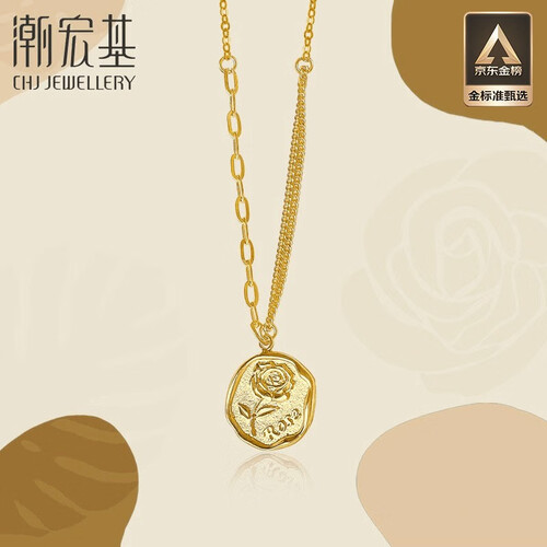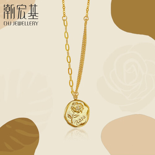 潮宏基玫瑰花牌黄金项链