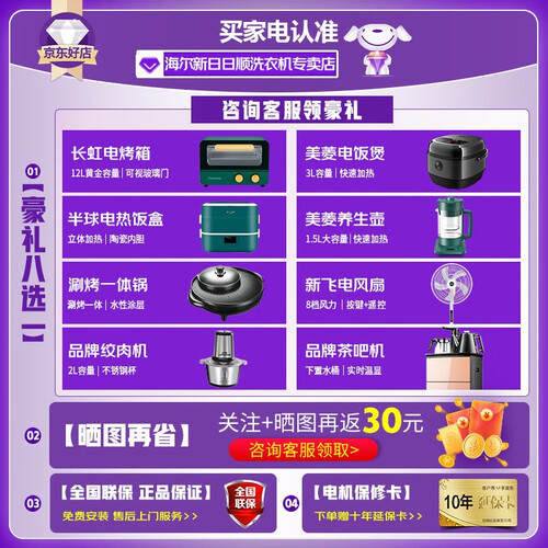 采用升级内筒设计,具有出色的耐腐蚀性,长久使用不会生锈。10公斤大容量,可搞定全家衣物,满足全家洗涤需求。