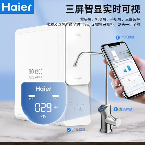 搭载两芯三级过滤,可有效滤除细菌、重金属等有害物质,保障全家用水安全。三屏智显,可实时显示水质,一目了然。
