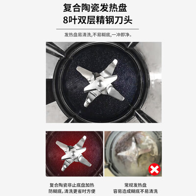 轻音低噪工作,不会打扰家人睡眠,早起使用更方便。八叶精钢刀头配置,耐腐蚀不易生锈,立体搅打,充分研磨。