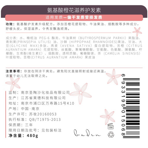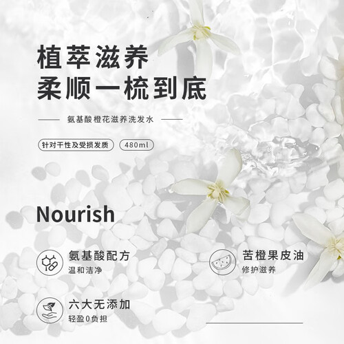萃取摩洛哥苦橙花精华,帮助增强了发丝的抓水力,提升秀发柔滑感。搭配何首乌提取物,让头发散发乌黑亮丽光泽。