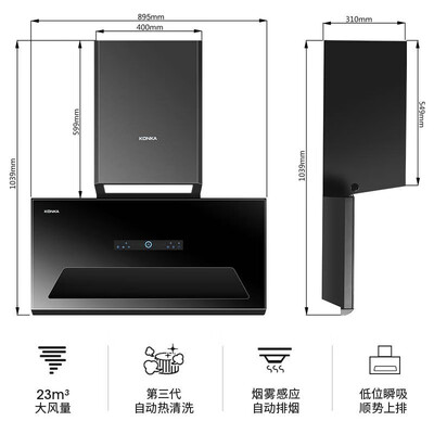 顶侧同吸,轻松扩大拢烟范围,让油烟无处可逃,空气更清新。质感黑晶玻璃面板,光亮度佳,长久使用干净如新。