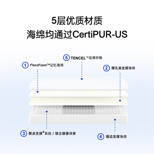 这款特殊的记忆海绵比同样体积的普通记忆海绵重量更大,密度更高,打造细腻感受。像是在拥抱中入睡,让你睡眠时更踏实。