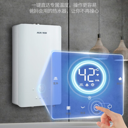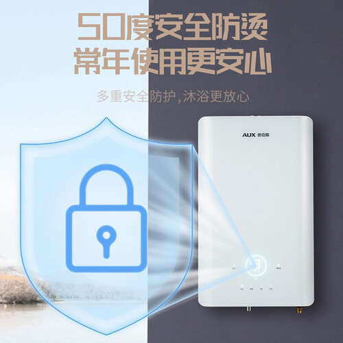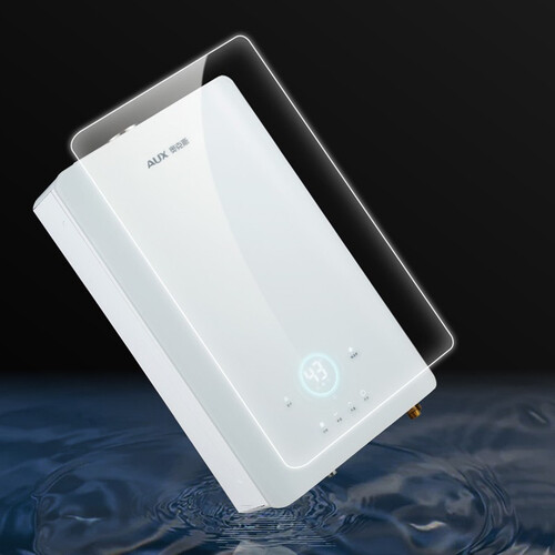 纯白双弧面钢化玻璃面板,奢华时尚,优雅大方,点缀家居美观。设有智能变升节能技术,轻松满足四季用水需求。