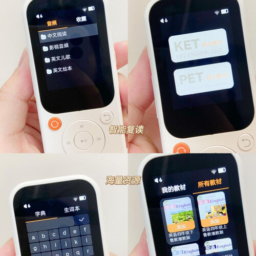 搭载清晰的触控屏幕,反应灵敏,手指一点就能完成操作。复读机的体积较小,重量也很轻盈,小朋友可以轻松携带。