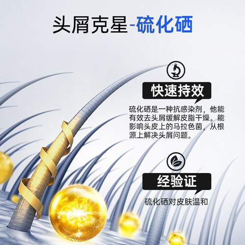 舒缓头皮配方,含有硫化硒成分,有助于温和洁净头屑,抑制马拉色菌的滋生,头皮环境更健康,不易头痒头油。