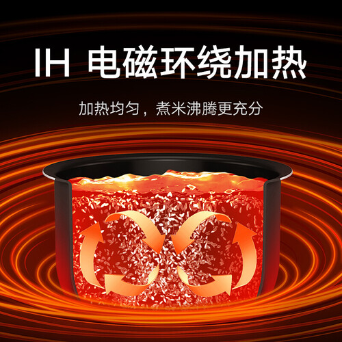 IH电磁环绕加热,控温精准,米粒受热均匀。蓄压球技术,打造微压烹饪空间,焖出米饭原香。蒸煮焖炖多功能,畅享下厨乐趣。